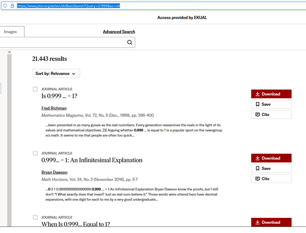 Ayrıca, bkz., https://www.jstor.org/action/doBasicSearch?Query=0.999&so=rel