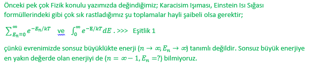 Dahası, ∞ simgesini içeren her Fizik eşitliğinde sorun var. (Buna karşın, Matematik eşitliklerinde sorun yok. Bu farkı ileride konu edineceğiz.)