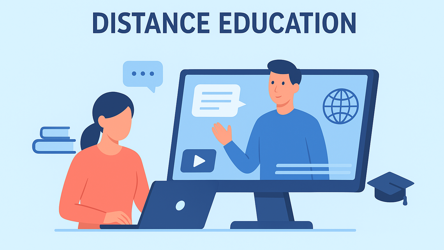 Distance Education refers to a learning and teaching process in which the instructor and the learners are not physically present in the same environment. Instead, education takes place through digital tools, online communication technologies, and virtual learning platforms. Distance Education allows students to access learning materials anytime and from anywhere, creating flexible and diverse learning opportunities.