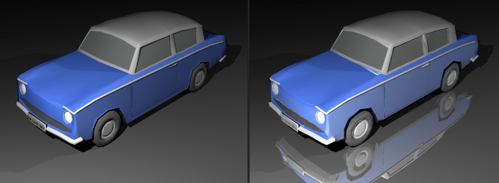 Mine is on the right, it has reflections. The materials are not listed as mirrors but they have mirror reflectance so I don’t know if I am doing something wrong.