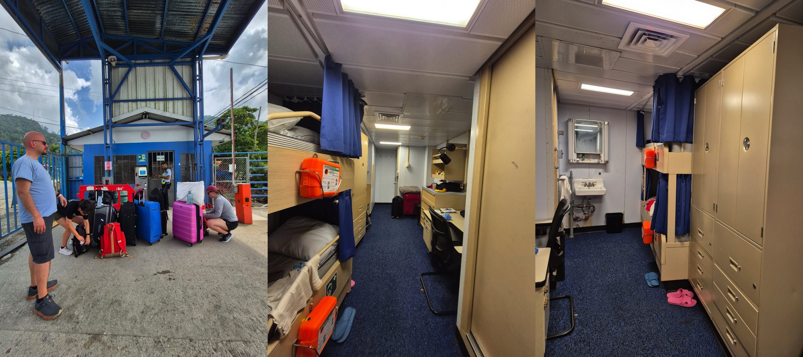 Kosta Riko’da Golfito limanında bizi tüm heybetiyle bekleyen gemimiz, Atlantis’e doğru ODTÜ Pasifik 2025 bilim ekibimizle birlikte yürüyoruz. İlk iş valizleri odalara yerleştirmek. Nimet’le benim kamaram girişteki merdivenlerden indiğimizde 1 kat aşağıda yer alıyor. Kapıda isimlerimizi görmek bir anda ikimizin de yüzünü güldürüyor. Odada ranzamız, çalışma masamız, dolaplarımız ve de yan oda ile birlikte kullanacağımız banyo/tuvaletimiz yer alıyor. Hemen yerleşmeye başlıyoruz. Bu katta bizim odamız dışında sefere katılan diğer 10 araştırmacının da odaları bulunuyor. Bazı araştırmacılar ve de gemi çalışanları ise 2. ve 3. katlardaki kamaralarda konaklıyorlar.