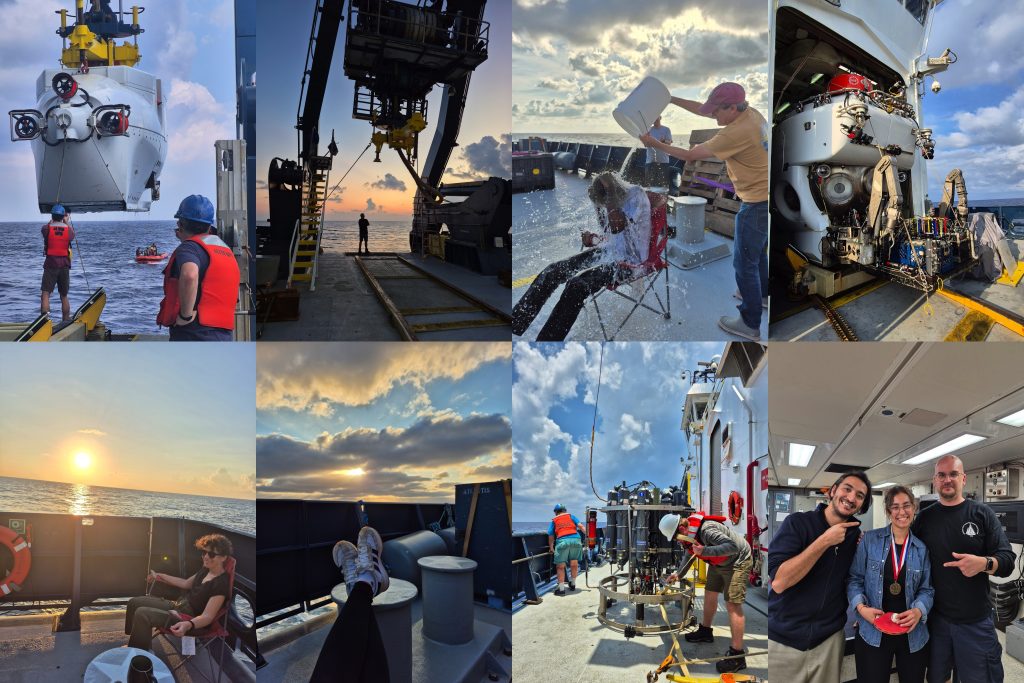 Kıçta bu köşenin hemen yanında Alvin denizaltısının okyanus yüzeyine bırakıldığı ve de bizim Alvin’e binmemiz için tasarlanan merdivenler var. Gün sonunda Alvin’in işi bittikten sonra tekrardan aynı kısımda bulunan üstü kapalı alana alınıyor, ta ki sabahki diğer dalışa kadar. Main labın ve de diğer laboratuvarların yer aldığı kat bu gün batımını izlediğimiz, Alvin’e bindiğimiz, Alvin’den indiğimizde ilk dalış sonrası ıslatıldığımız kıçtaki bu alana çıkıyor. Bu alanın yan tarafında ise CTD, vinç ve de bot yer alıyor.