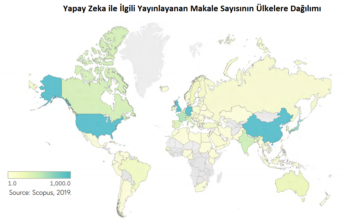 « Yapay Zeka Hakkında Makallerin Ülkelere Dağılım Haritası